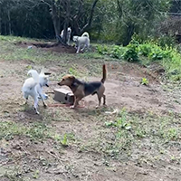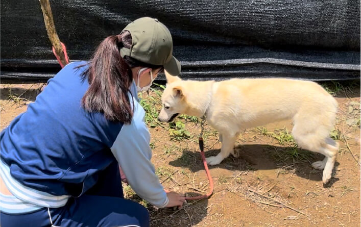 仲間達と世話する保護した犬猫は元気いっぱいですが、